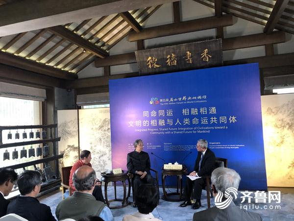 齐鲁网济宁9月25日讯 第五届尼山世界文明论坛首场高端对话今天下午在曲阜尼山举行,全国人大常委会原副委员长、尼山论坛主席许嘉璐和世界知名学者江文汉围绕“人类文明的新时代”这一主题,展开跨文明沟通对话,对构建人类命运共同体贡献东西方不同文明间的智慧。